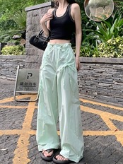 華やかなリボンが印象的なワイドパンツをご紹介します。ワークパンツとしても使える機能性と、女性らしいギャザーデザインが特徴です。ウエスト部分はゴム入りで、着心地も抜群!さらに、足元までゆったりとしたシルエットがスタイリッシュな印象を与えます。
