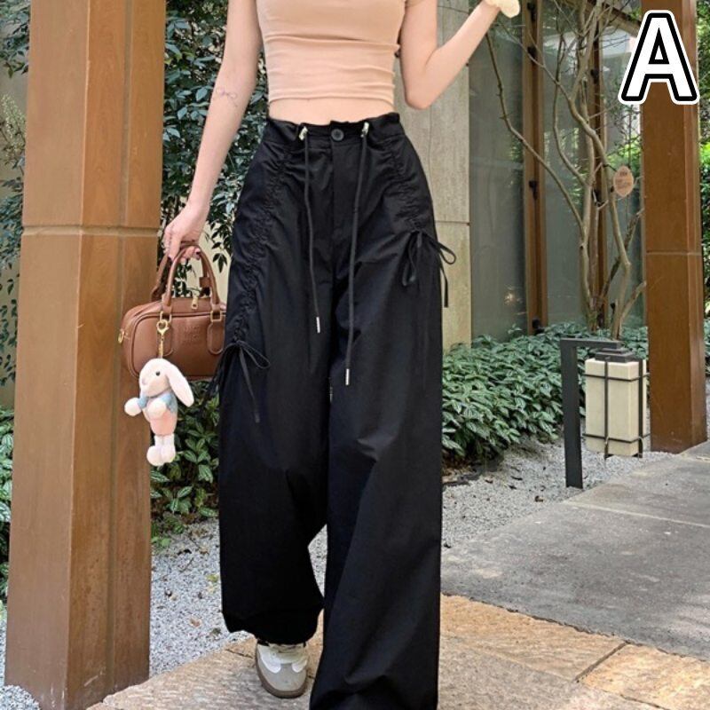 パンツ ボトムス ズボン ワークパンツ ギャザー リボン ワイドパンツ レディース