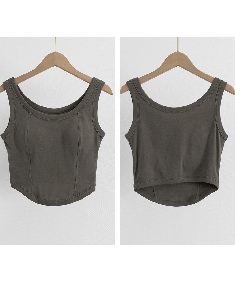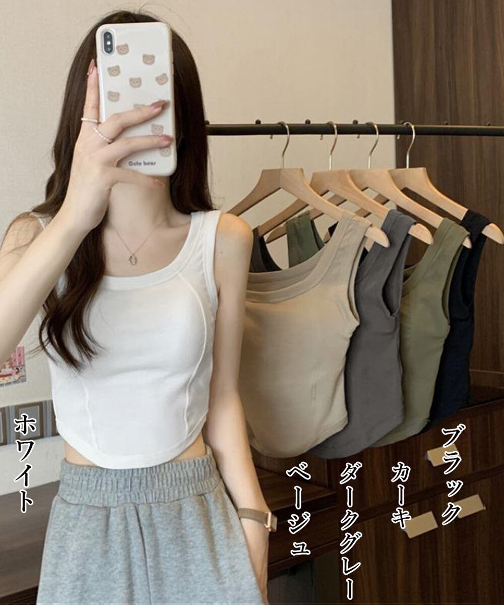 Uネックタンク無地 短丈 タンクトップ 見せインナー重ね着