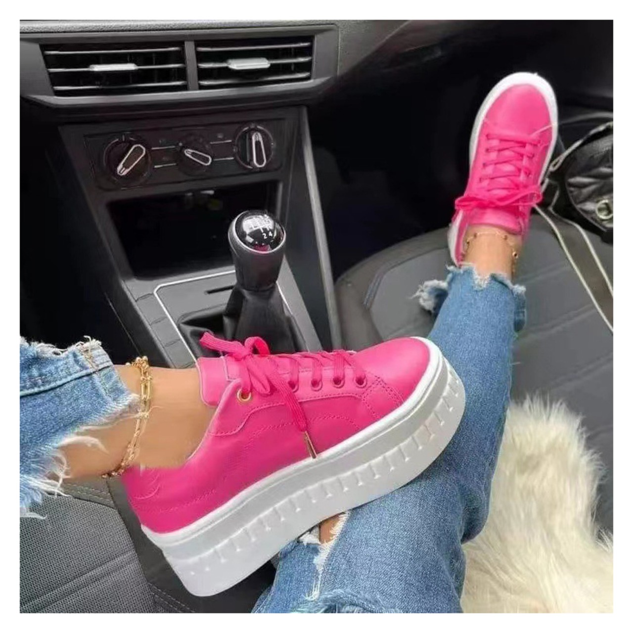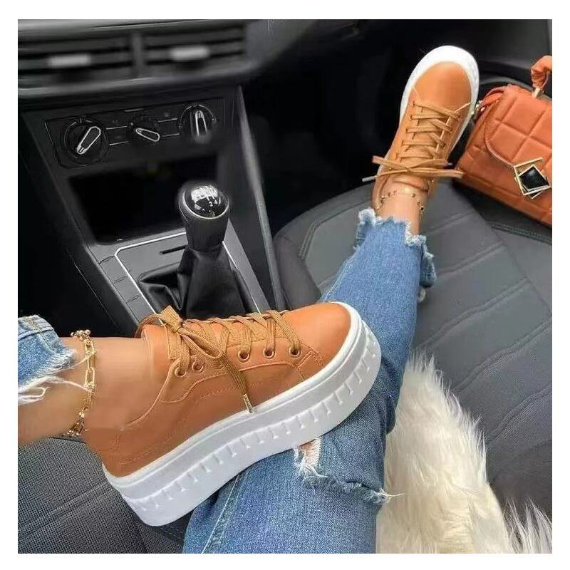 レディース スニーカー 紐靴 シューズ 厚底 スタイルアップ 弾力 ローカット 黒 脚長