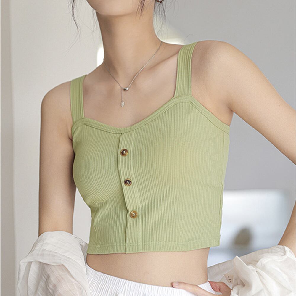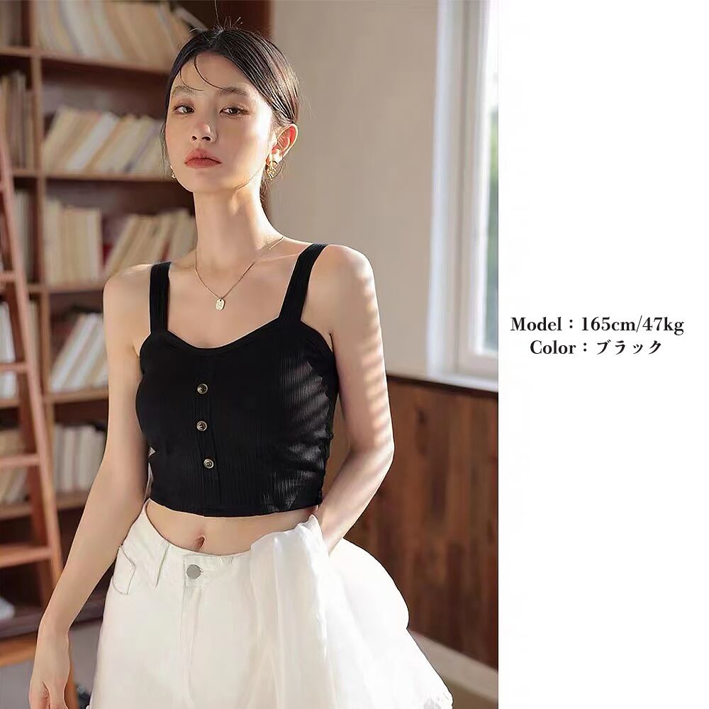 ブラキャミ ブラトップ トップス へそ出しキャミ ボタン セクシー 肌着 無地 カジュアル 胸元 大人 おしゃれ