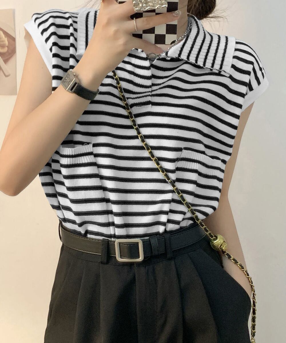 フレンチスリーブポロニット ボーダー柄
