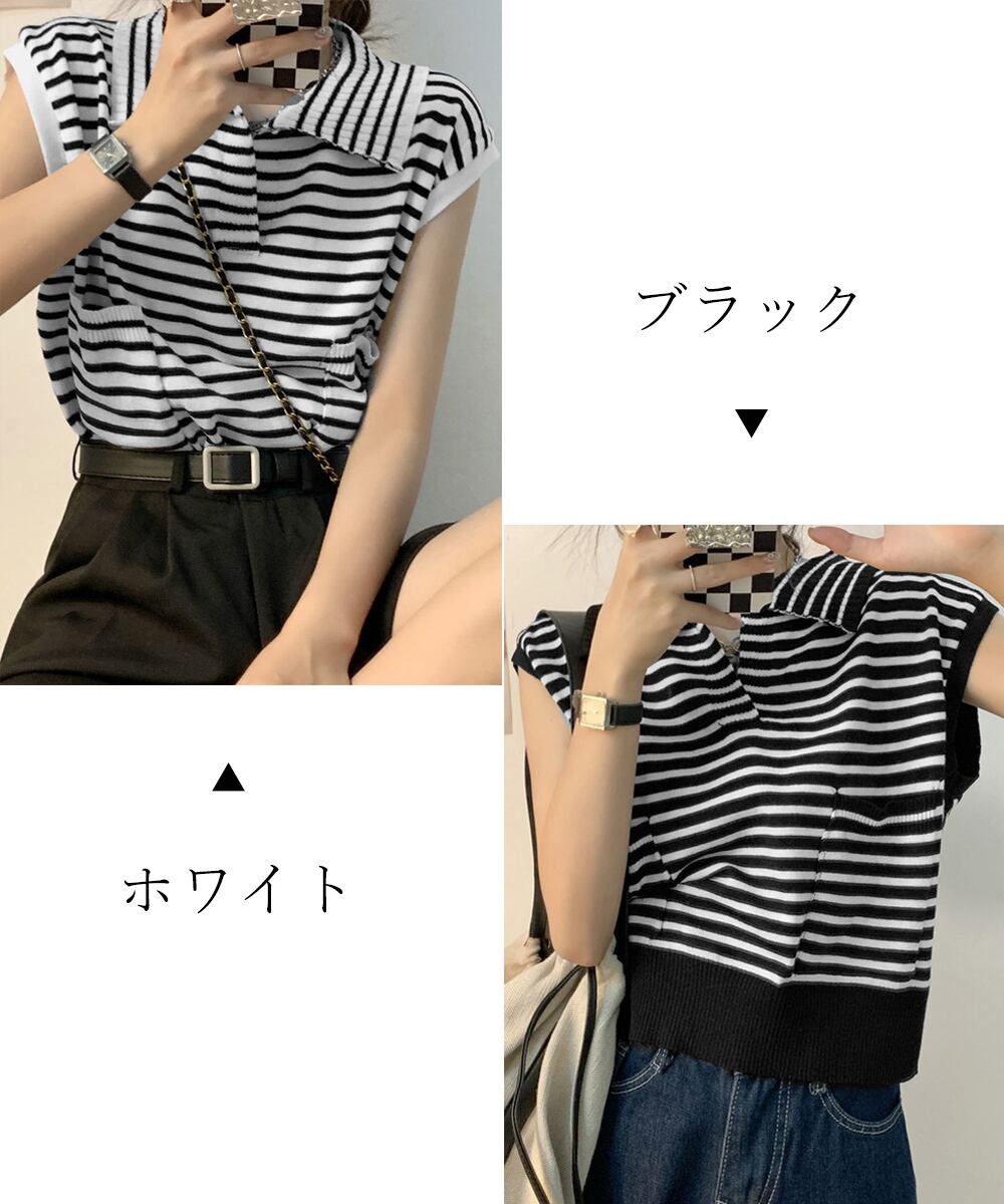 レディース ポケット付き サマーニット 着やせ ポロニットソー 着回し カジュアル 可愛い夏服 ニットトップス