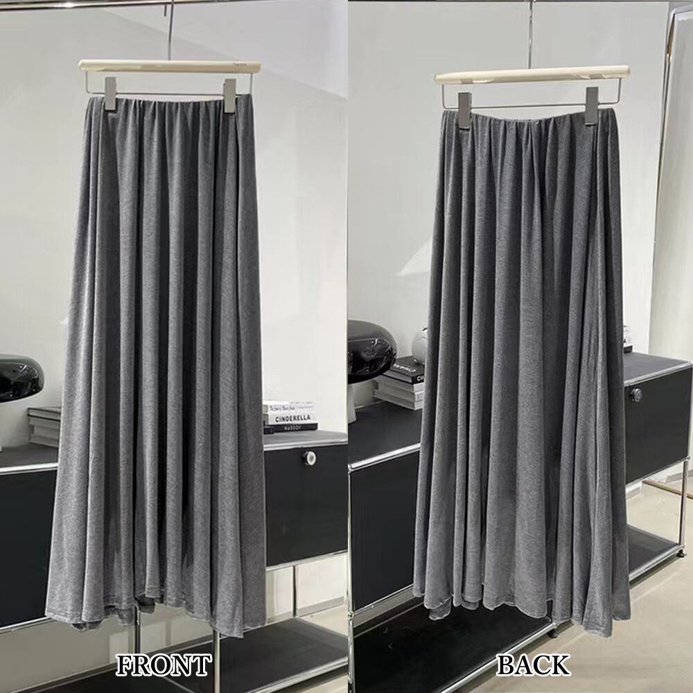 とろんと落ち感のある肌触りの良い綿混生地を使用、歩く度に揺れて優雅な印象のふんわりとろみスカート