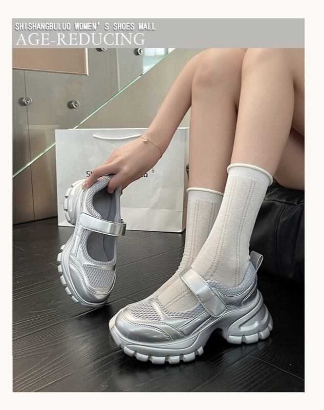 シューズ スニーカー ベルクロ メッシュ 通気 厚底 靴 レディース