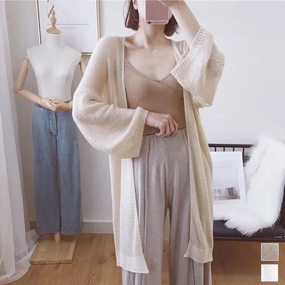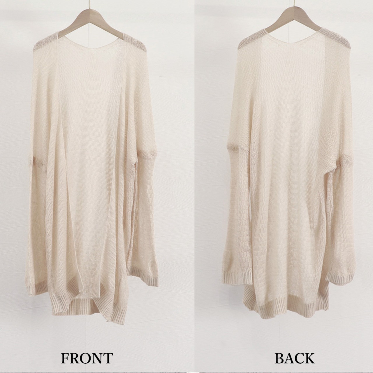 ロングシアーカーディガン 長袖 ライト アウター ニット 軽い サマーニット 羽織り 無地 日よけ 冷房対策通勤オフィス