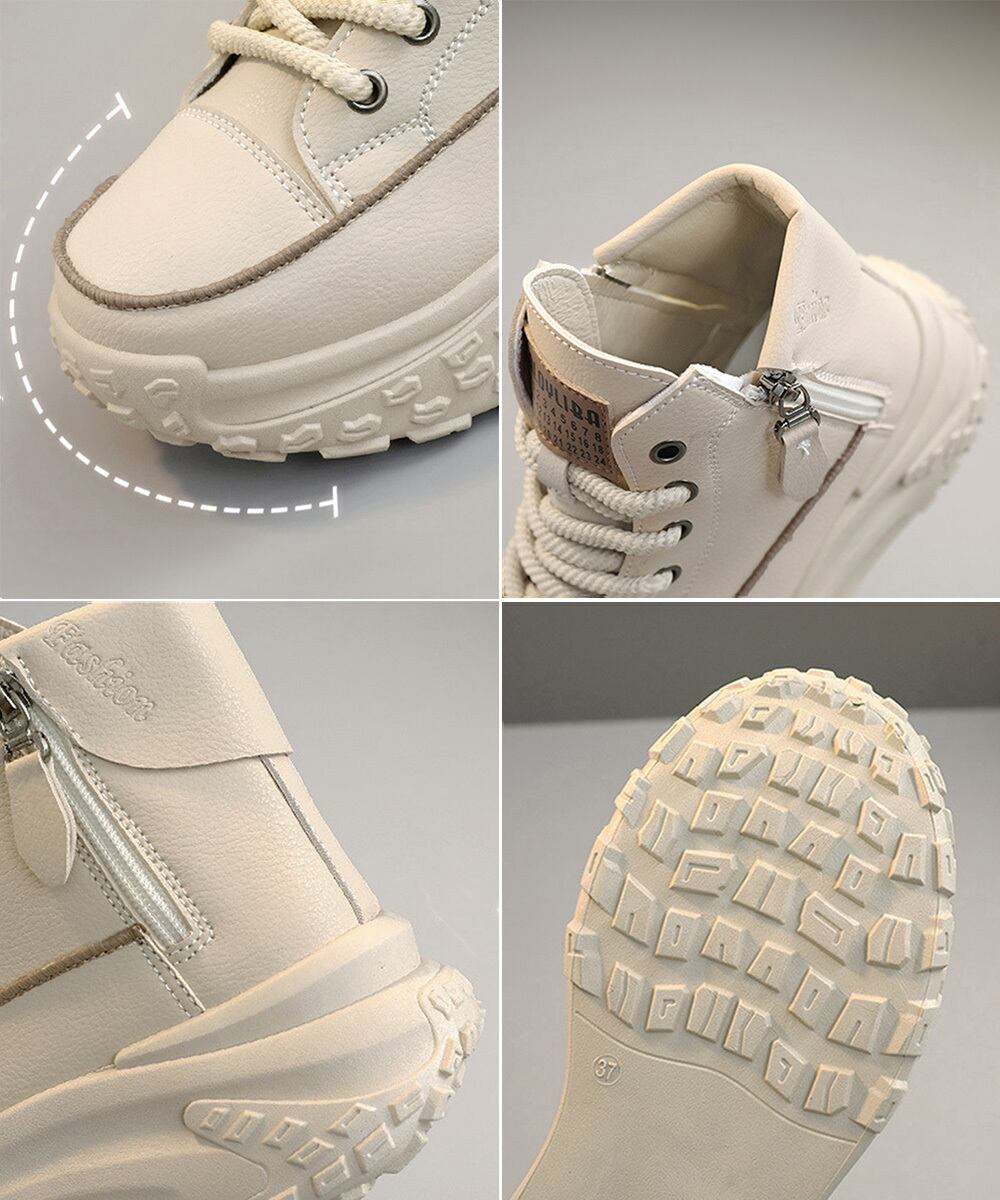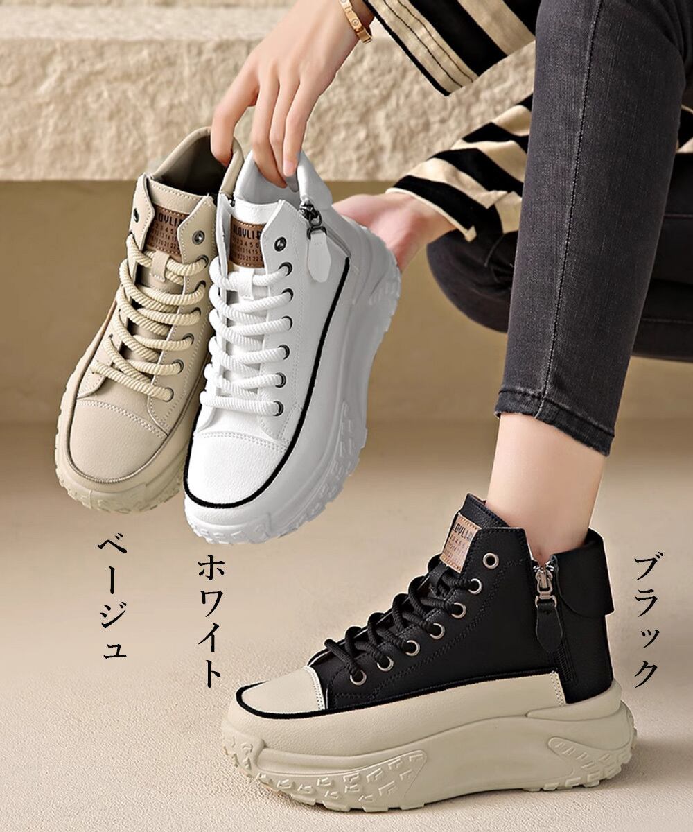 韓国 レースアップスニーカー 歩きやすい おしゃれ 美脚脚長 疲れないシューズ ボリュームソール 厚底スニーカー白 四季