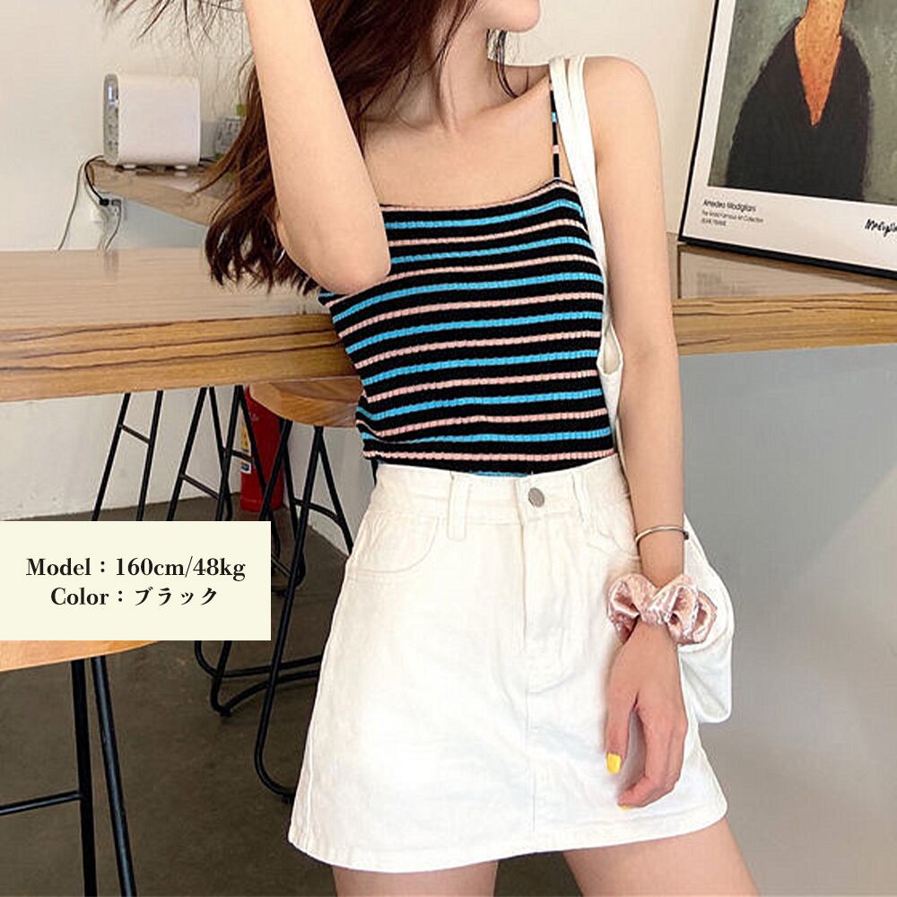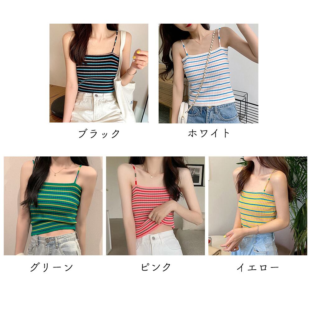 トップス インナー ニット ビスチェ ノースリーブ ボーダー柄 肌着 重ね着 セクシー オルチャン 可愛い 全5色