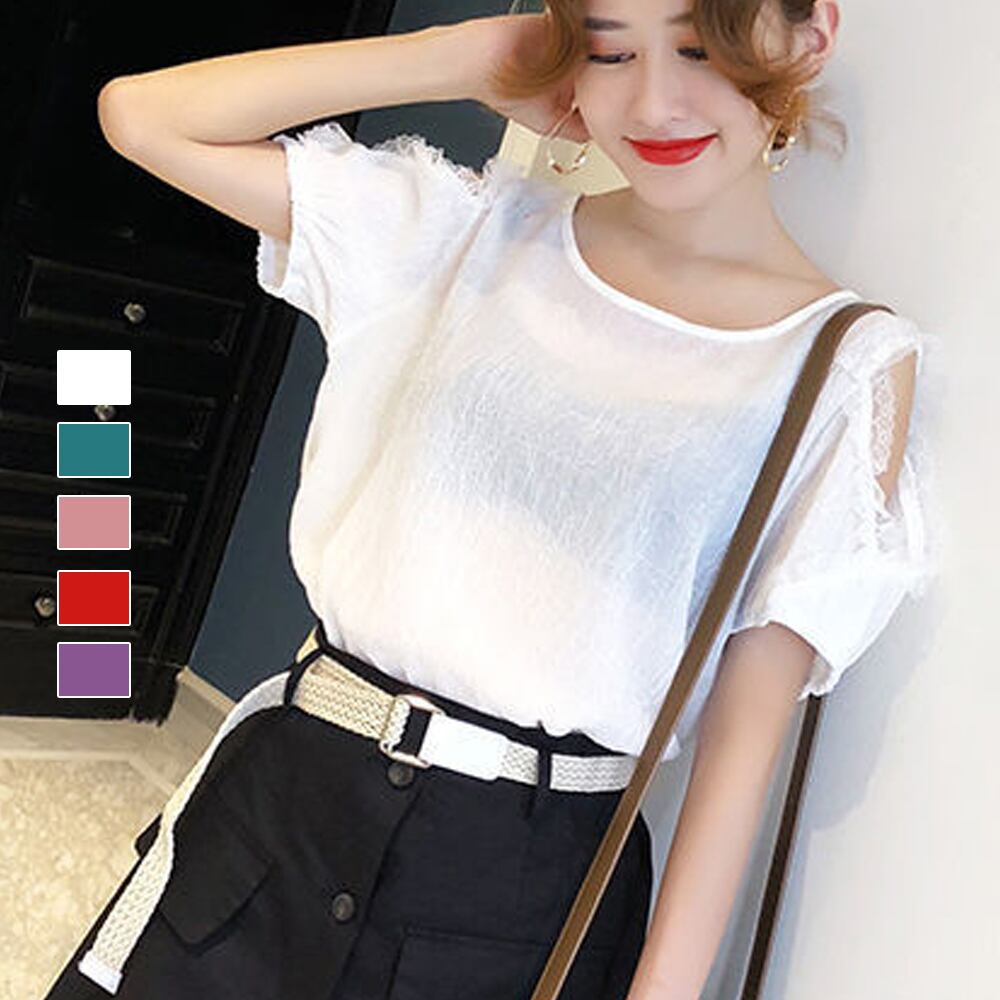 トップス レディース 透け感 ブラウス 肩出し 可愛い 韓国風 フェミニン おしゃれ 肌見せ 肩あき