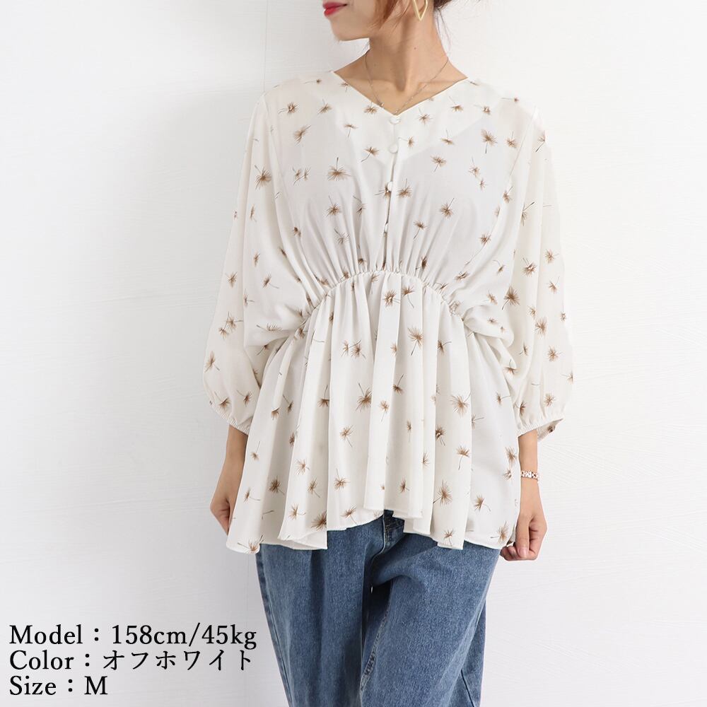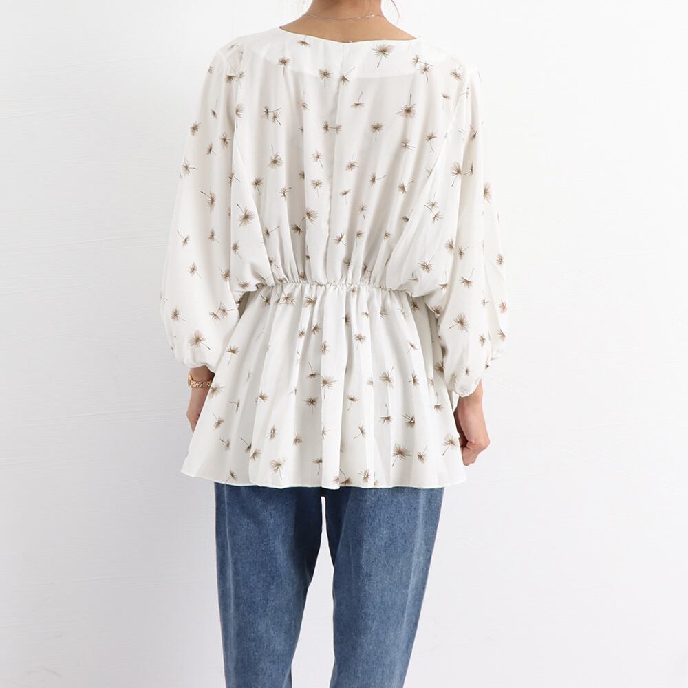 たんぽぽ柄がかわいいボリューム袖のシャツブラウス